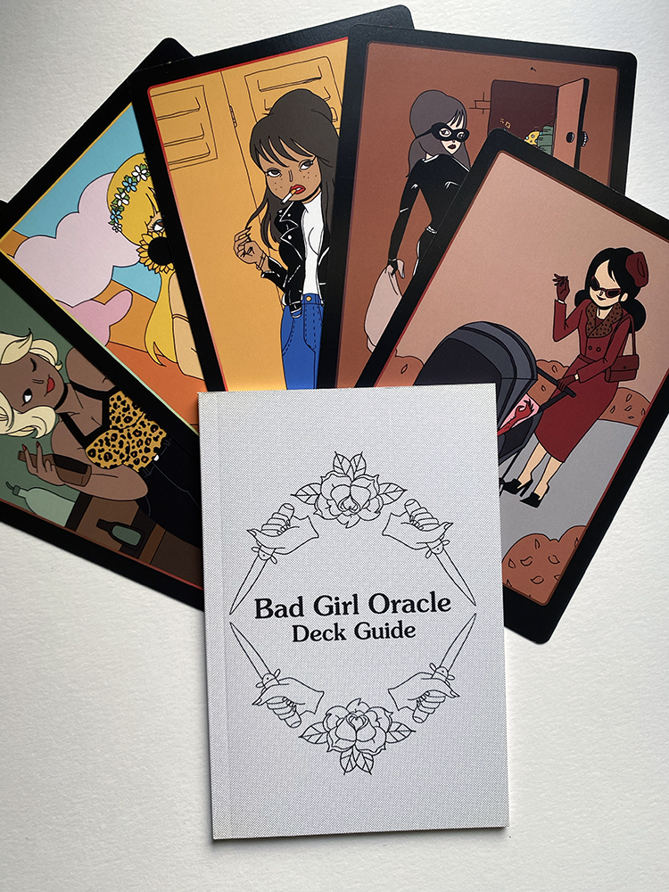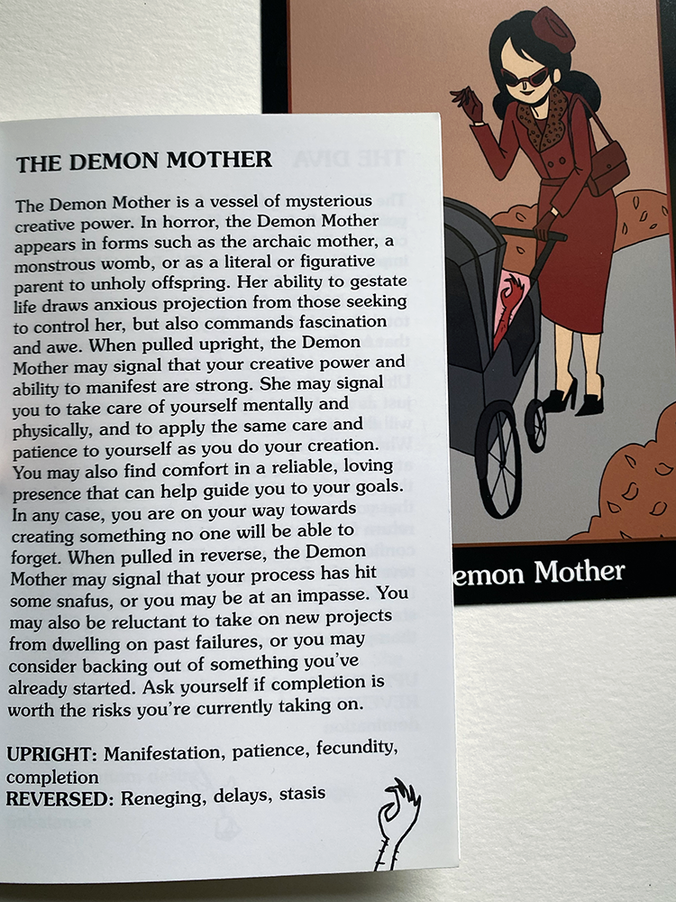 40-card divination tool, comes with tuckbox, cards, and 44-page guide booklet for upright and reversed readings. Cards are 4×6″ and printed on durable stock. Each deck is individually shrink-wrapped. Printed in the USA.