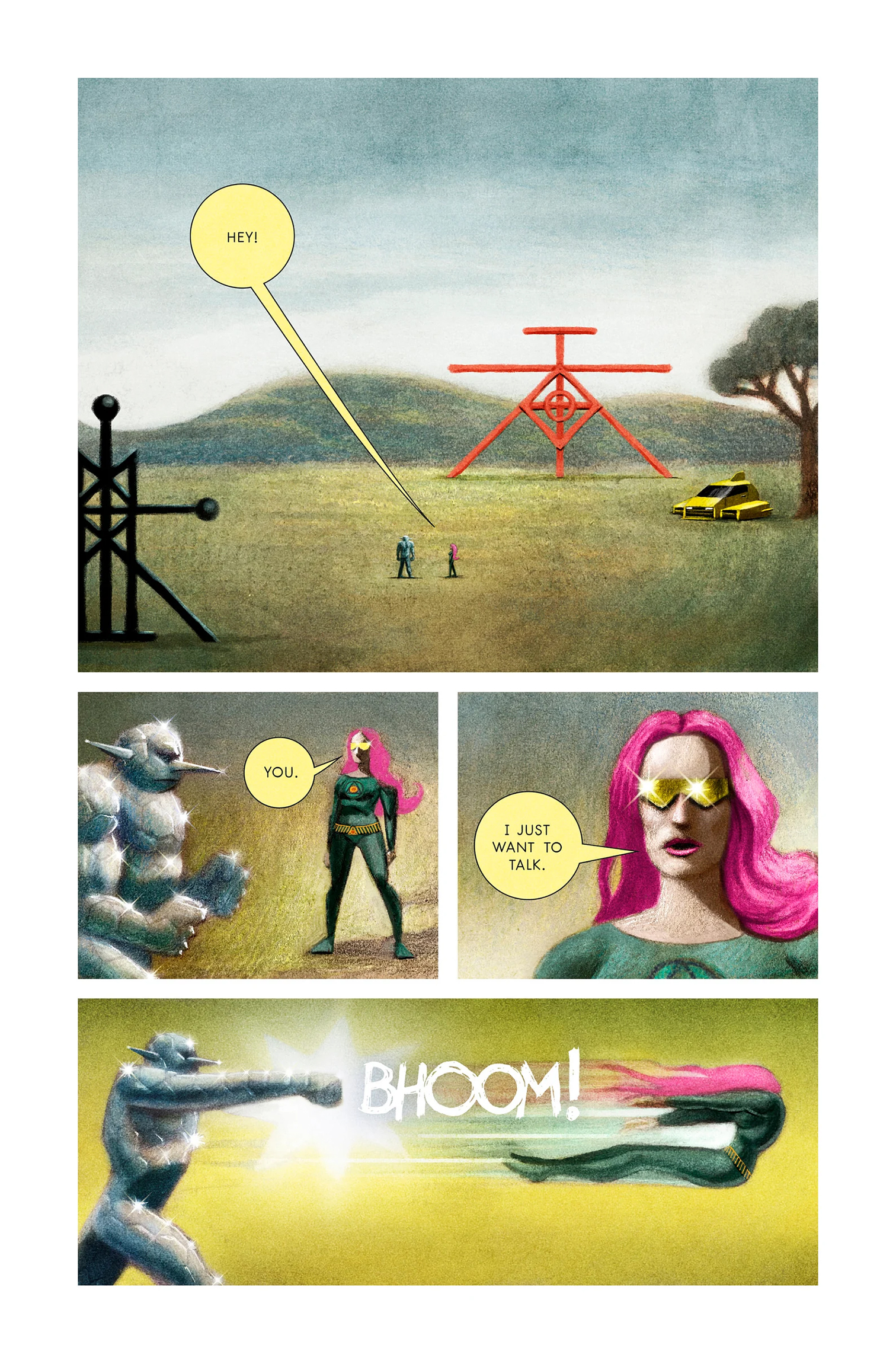 Featuring four short stories written, drawn, lettered, and designed by Sam J. Royale. It’s got an elite assassin, space gods, pointy monsters, a pointy robot, and a flying car that comfortably seats four!